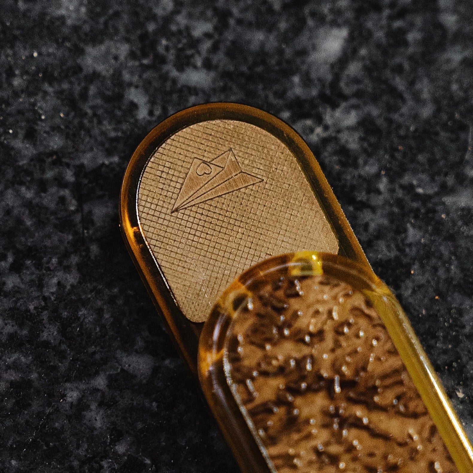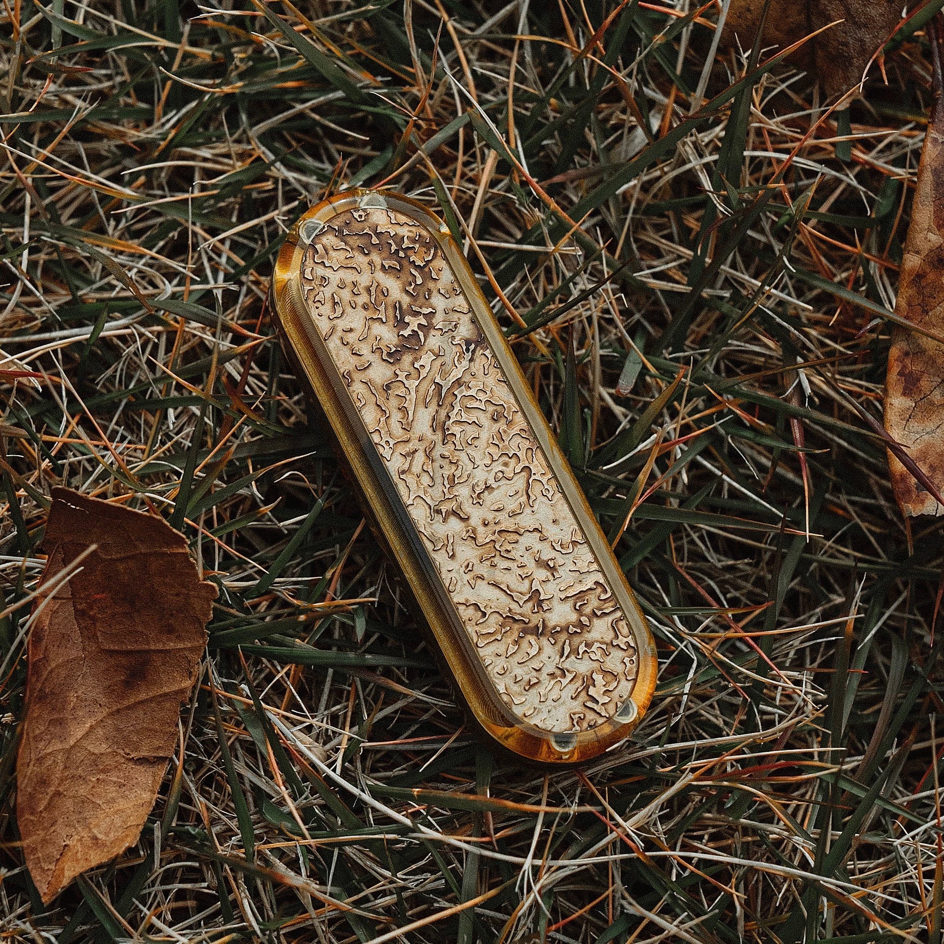 Material: Main body in PEI, exterior with aged stainless steel inlays, brass rails.